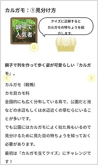 →公園にある自然や動植物について、クイズ形式で学べる環境学習型のコンテンツもあります。自由研究に使えるかも?!
