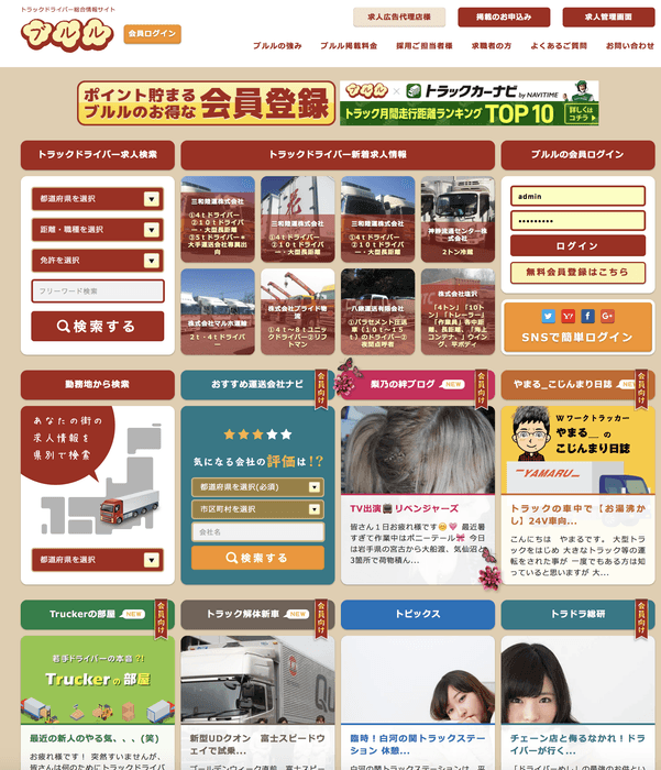 また、求人コーナーでは、一般求人サイトとは一線を画したトラック運送業界に特化した構成で、多くのドライバーの皆様にご利用いただいております。