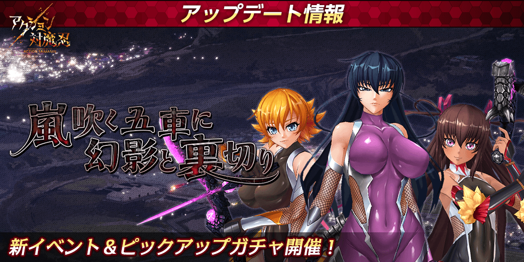 近未来くノ一アクションRPG『アクション対魔忍』、大型アップデート実施!新プレイアブルキャラクター・幻影の対魔忍「水城不知火」参戦!