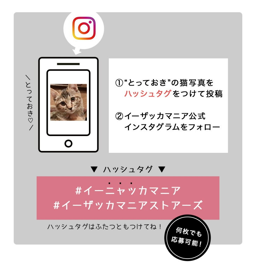 来る2月22日「猫の日」へ向けてイーザッカマニアストアーズではインスタグラムにて「#イーニャッカマニアフォトコンテスト」を開催しております。