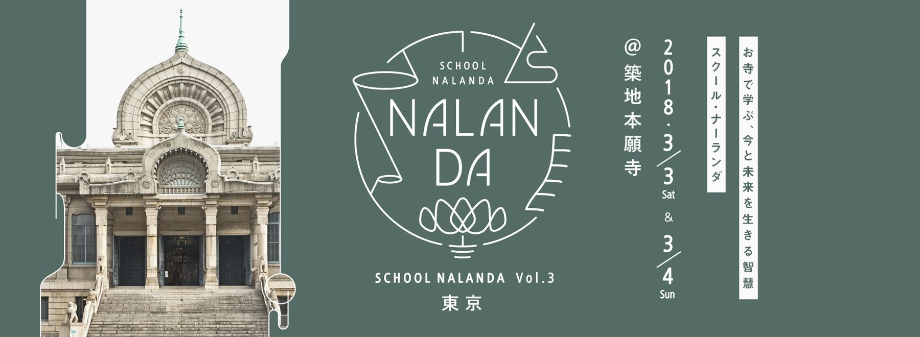 有限会社エピファニーワークスが浄土真宗本願寺派子ども・若者ご縁づくり推進室と連携してプロデュースする、若い世代のためのクロスジャンルな学びの場「スクール・ナーランダ」を、2018年3月3日(土)・4日(日)に東京・築地本願寺にて開催します。