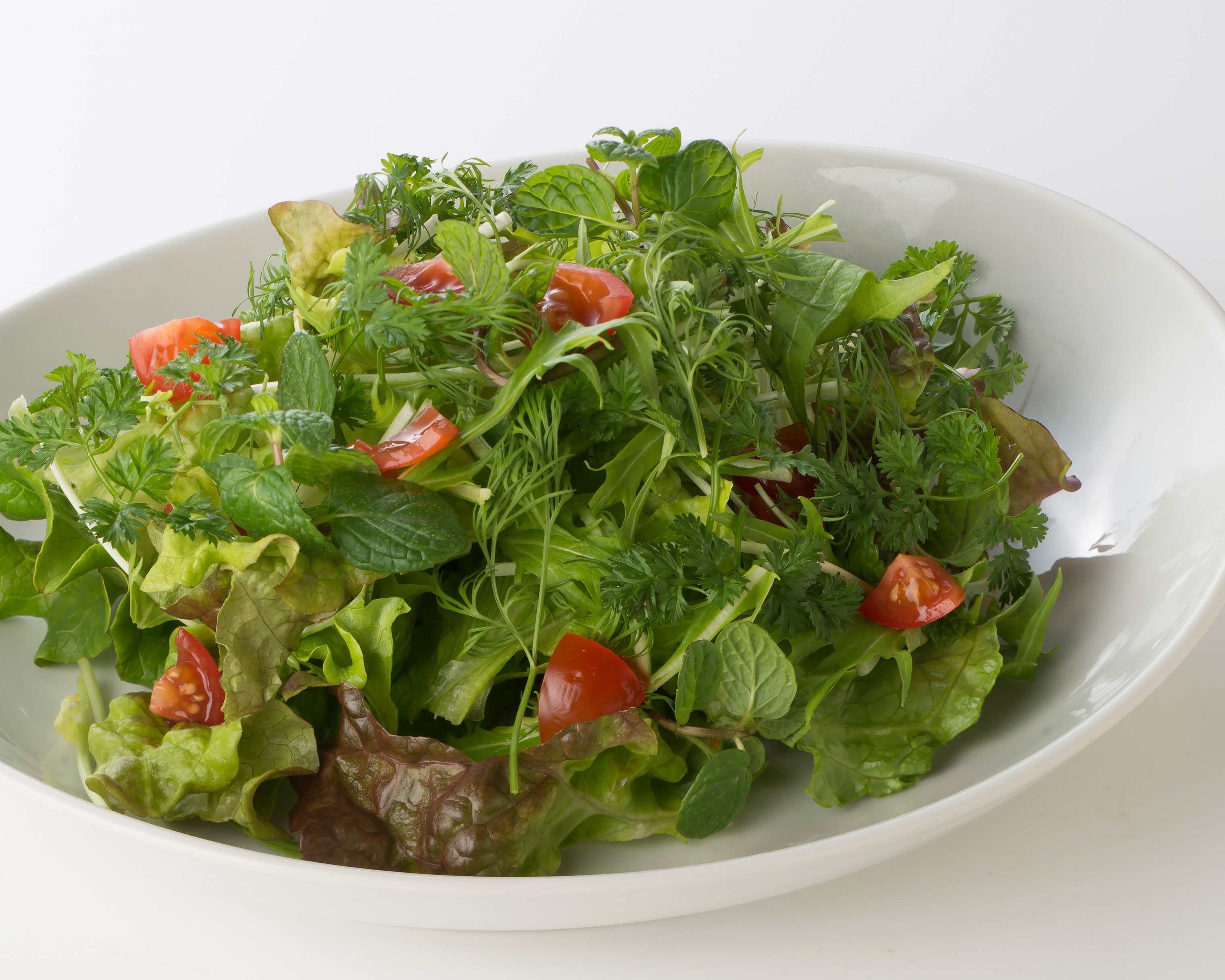 野菜不足な方にもお召し上がりいただきたい、ミントが爽やかに香るハーブたっぷりの特製リフレッシュサラダ。