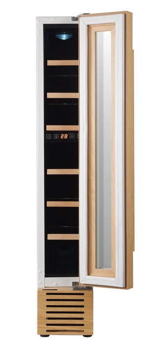 『Angelshare CE-C7W-W』は、キッチンなどへのビルトインが可能な前面吸排気構造を採用したコンプレッサー式のスリムタワー型7本収納用ワインセラーです。