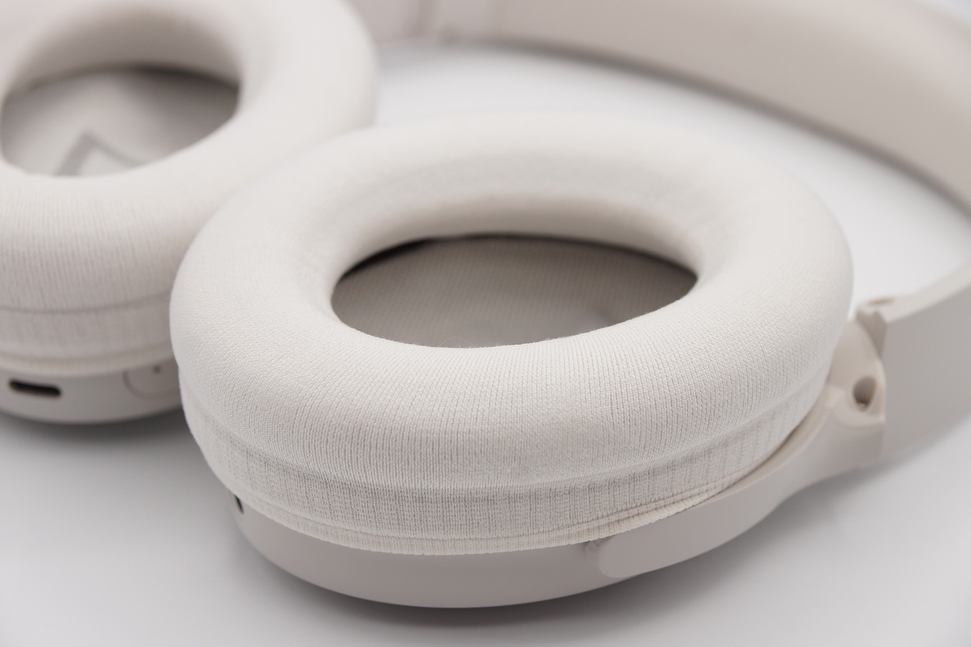 カバーは一体成型のため縫い目による凹凸がなく、吸水性に優れたやさしい肌触りの編地により、ヘッドホン装着時の汗や蒸れの不快感を軽減し、快適な装着感を提供します。