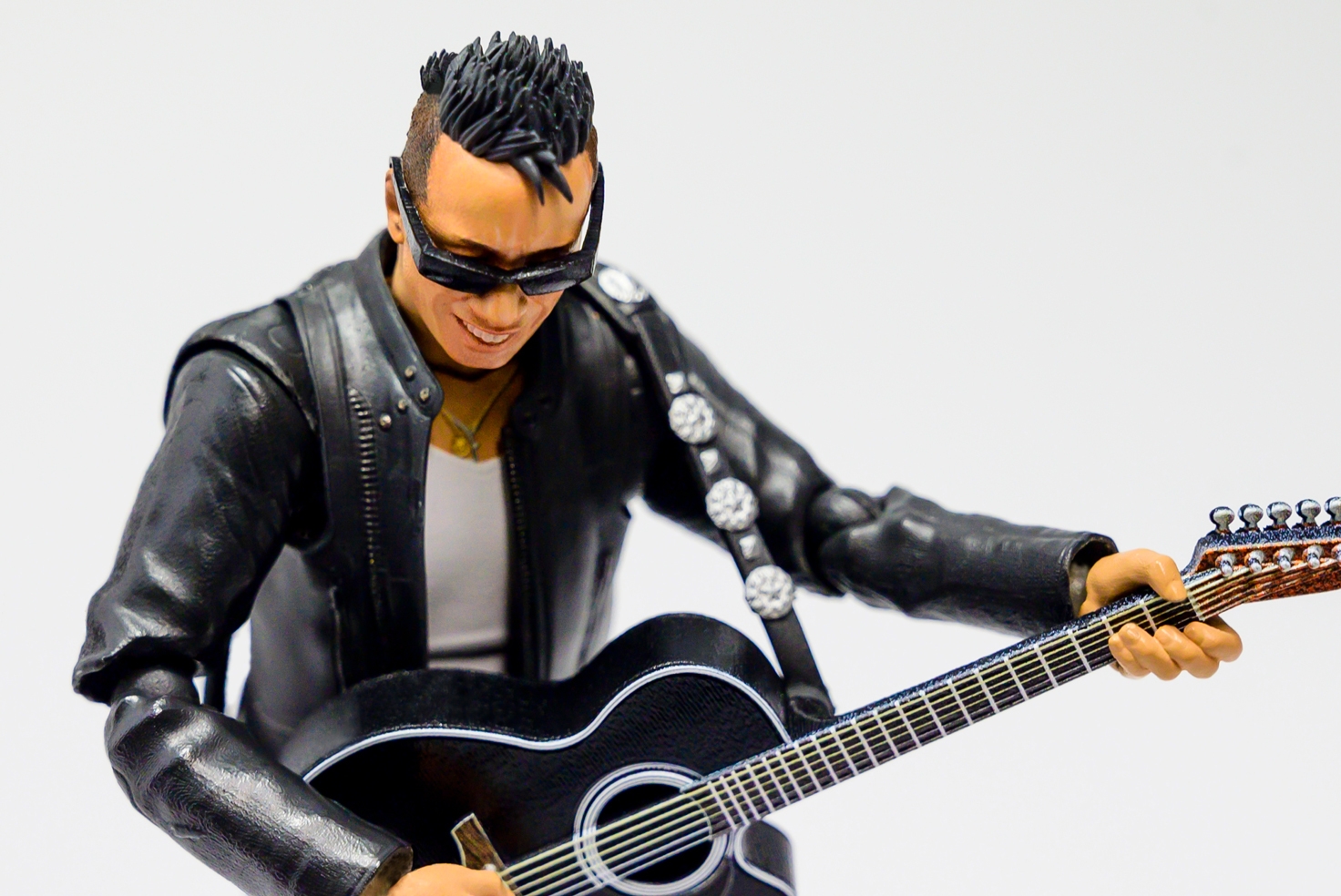 商品化にあたり、長渕剛氏監修のもと、実際の革ジャンやギターを参考にし、質感や縫い目、ボタンなどの細かいディテールまでもリアルに表現しています。