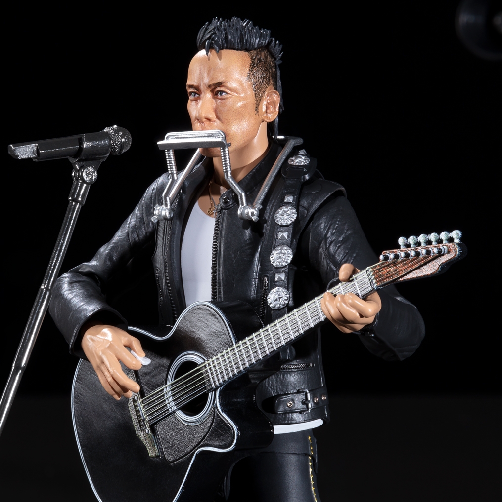 長渕剛氏愛用のギターやピック、ハーモニカ、サングラスなど多種多様なパーツが付属。長渕剛氏愛用のギターは、弦やペグなど細部の造形まで精密に表現。ストラップも細かく塗装しています。マイクは、手に持たせるだけでなく、マイクスタンドにセットすることもできます。また、ピックを持った手首が付属します。