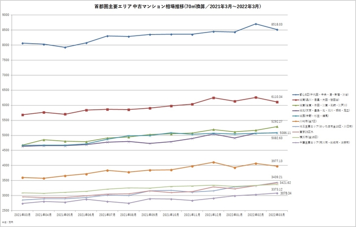 ■主要エリア 中古マンション相場推移(2021年3月~2022年3月)