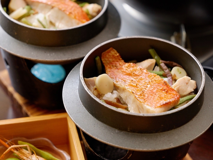 金目鯛コースでは、お造りからしゃぶしゃぶ、姿煮、釜めしまでたっぷりと伊豆グルメ金目鯛を堪能いただけます。