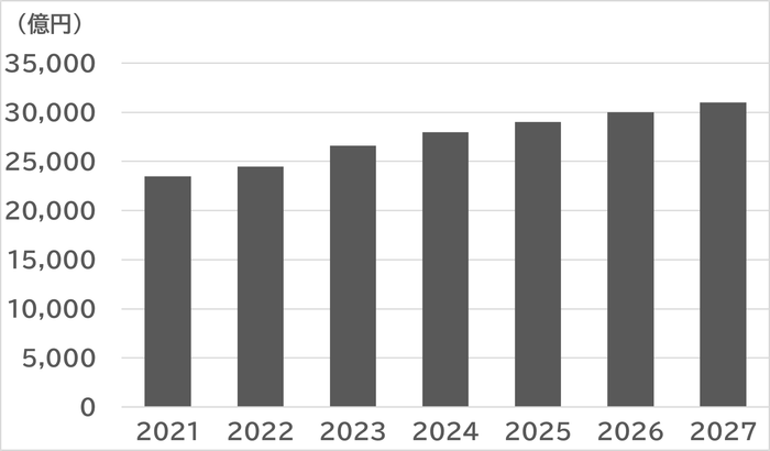 2024年時点での市場規模は約2.8兆円と推定され、カテゴリー別にはレディースが約6割を占め、続いてメンズ、子供服と続く。今後も年間3~4%の成長が見込まれ、2027年には3兆円を突破する可能性がある。ファストファッション企業は、SPA (製造小売業)モデルを採用し、企画から販売までを一貫して行う企業が多く、実店舗とECの両軸でチャネル展開を進めている点も市場拡大を支える要因である。郊外立地への進出や店舗の多機能化も見られ、今後はリアルとデジタルの融合による新たな販売体験の提供が競争力の鍵となるだろう。
