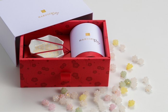 (2) 箔小紋豆皿・金平糖セット 3,500円(税抜)