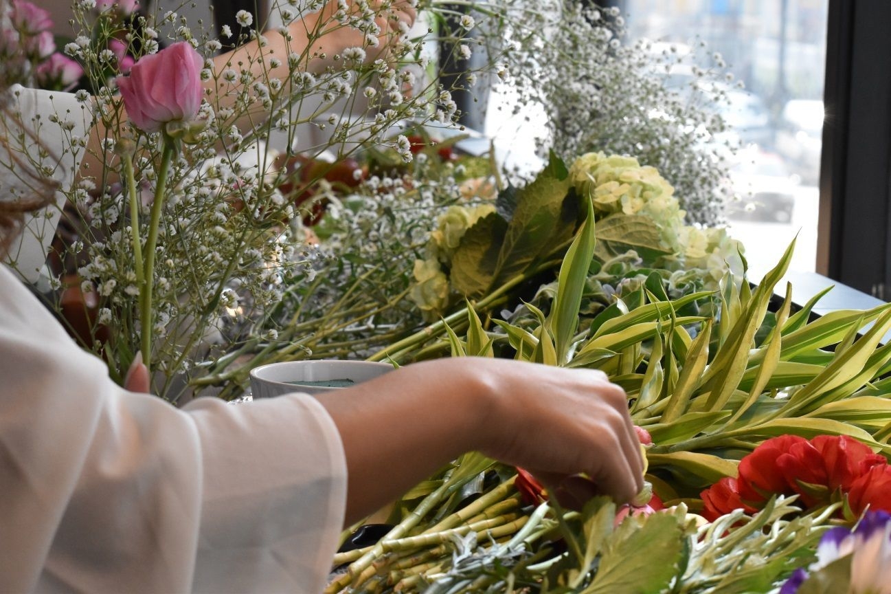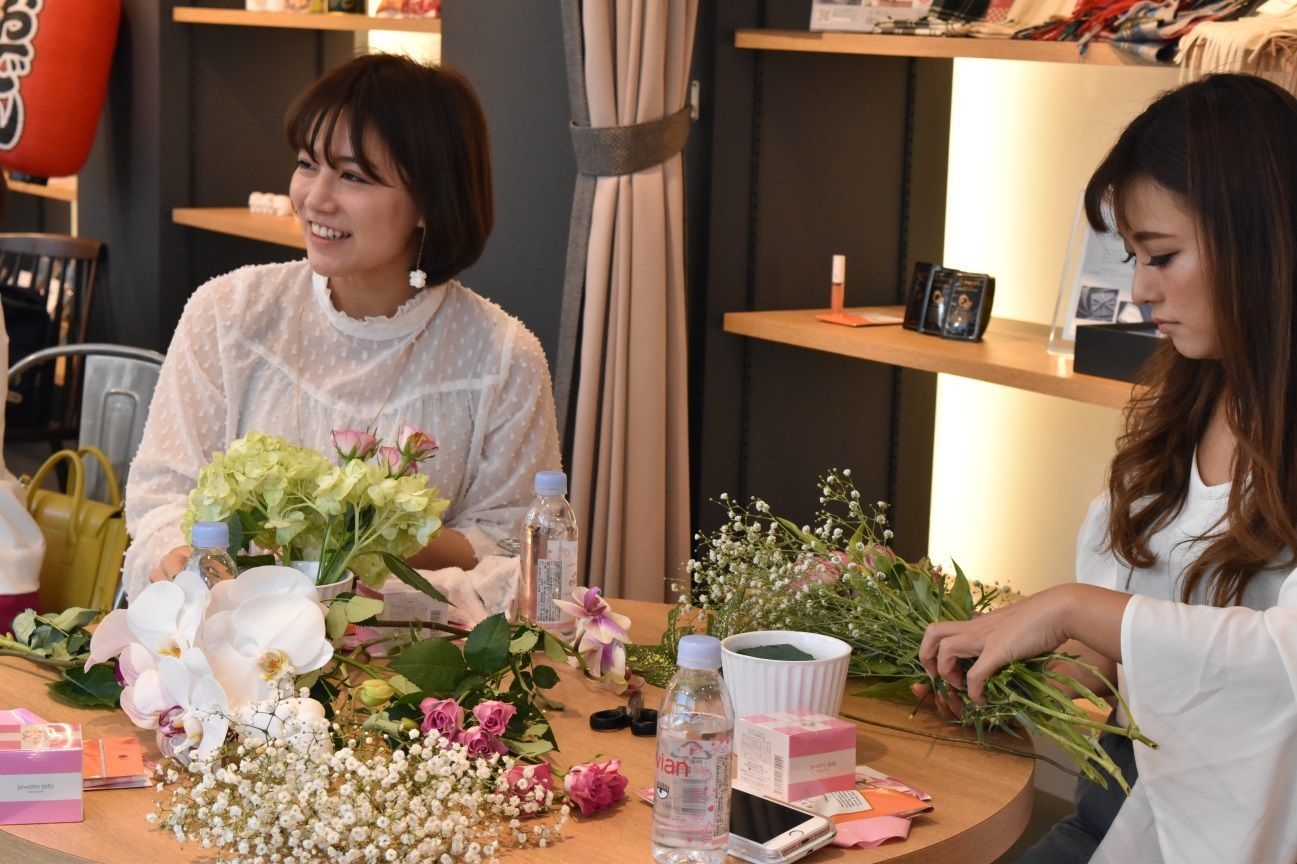イベントでは、株式会社モルティーが行うSNSキャンペーン「flowery lip EROINA」にちなんだ、色とりどりのお花を使ったフラワーアレンジメントを行いました。参加者の方々にもお気に入りのお花を使ったアレンジをお楽しみいただきました。