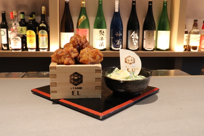 料理の素材も味わいも京都らしさにこだわったレストラン『ダイニング ENT』では、旬の食材で彩った「ENT御膳 松花堂」2,530円(税込)を、京都の四季を感じる一品料理とお酒を提供するスタンディングバー『スタンド EL』では唐揚げを特製ELソースで絡め枡に入れた「枡唐(ますから)」550円(税込)をシグニチャーフードとして販売し、2023年10月1日(日)~10月31日(火)まで2.5周年にちなんで25%オフで提供いたします。