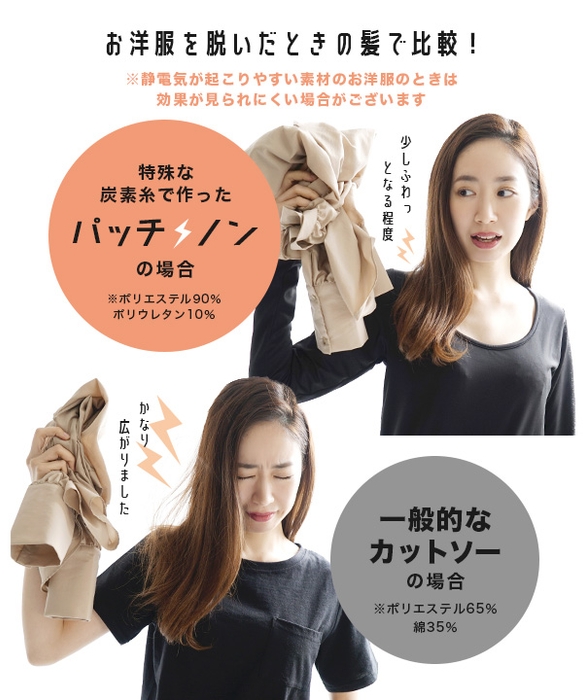 イーザッカマニアストアーズでは冬のお悩み対策を簡単に出来るよう、着ているだけで静電気を軽減できるカットソー「パッチ・ノン裏起毛インナー」をご用意いたしました。