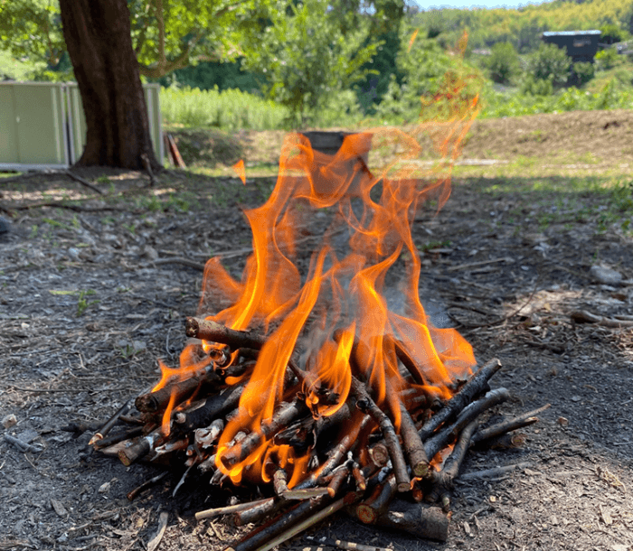 ① 焚火体験(ファイヤースターター・マッチ実践編):親子で里山に落ちている木を集めて火を起こしてみよう