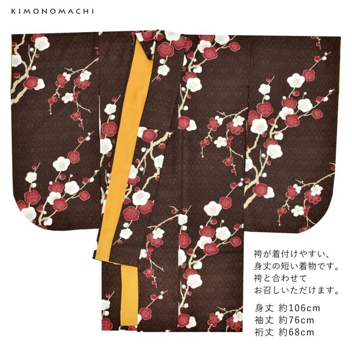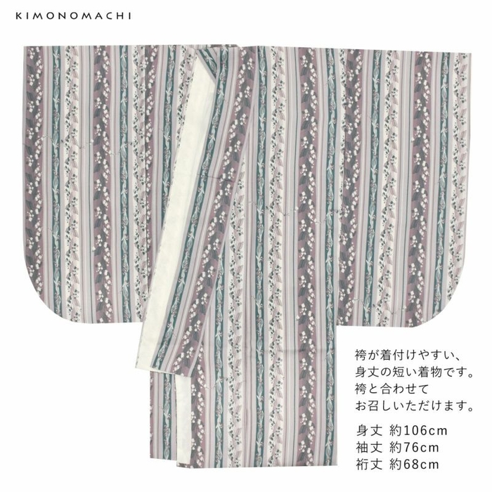 京都きもの町オリジナルブランド「KIMONOMACHI」の二尺袖着物は、袴と合わせて卒業式などの袴スタイルにおすすめです。また、身丈が袴下に着るのに最適なショート丈となっていますので、手早く着付けることが可能。ポリエステル素材なので自宅の洗濯機で洗え、お手入れが楽ちんなのも魅力です。