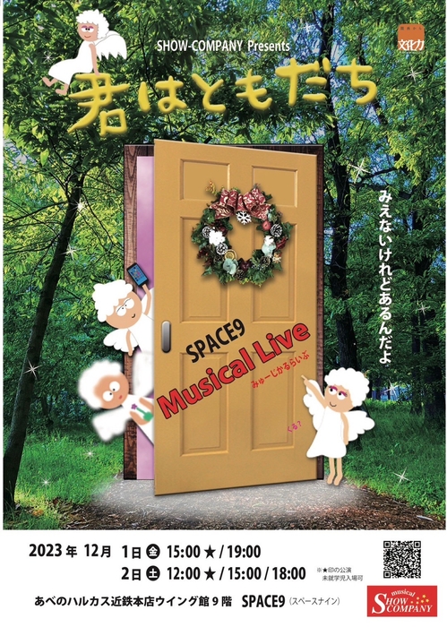 SHOW-COMPANY(代表:阪上めいこ)主催、「Musical Live『君はともだち』」が2023年12月1日 (金) ~2023年12月2日 (土)にSPACE9(大阪府大阪市阿倍野区阿倍野筋1-1-43あべのハルカス近鉄本店ウイング館9階)にて上演されます。