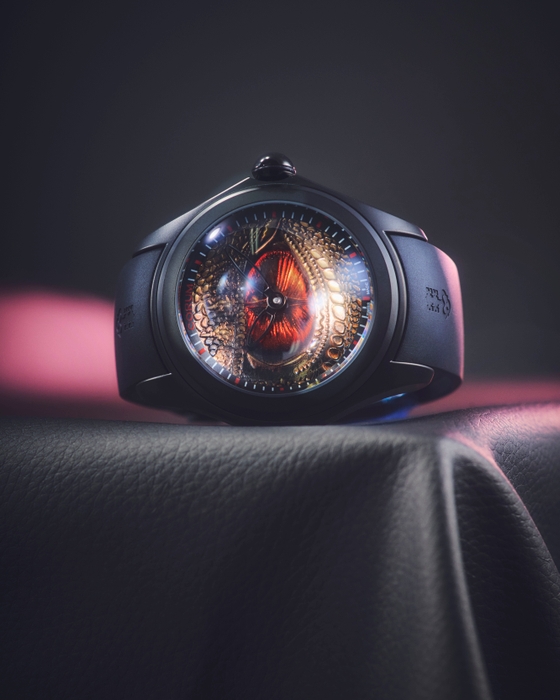 泡のように膨らんだドーム型風防に浮かび上がる「ドラゴン アイ」ダイアル