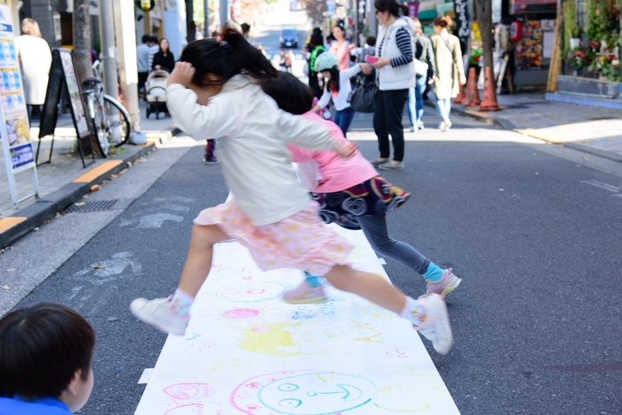 特に、神楽坂通りの坂上から坂下まで全⻑700mにロール紙を敷き、道⾏く⼈々に⾃由にお絵描きしてもらうメインイベント「坂にお絵描き〜700mのキャンバス」は、まち⾶び名物として定着し、マスコミ等に紹介される機会も増えております。