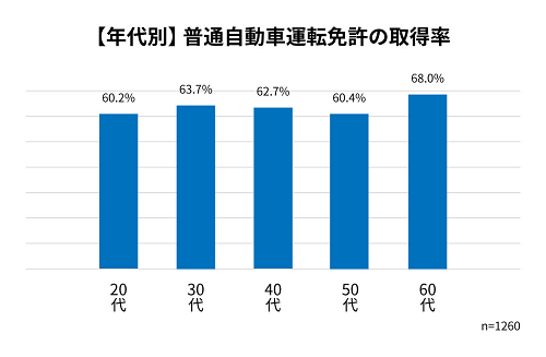 昨今、若い世代が「車離れ」しているとも言われていますが、調査の結果、年代が異なっても取得率は大きく変わらないという結果になりました。
