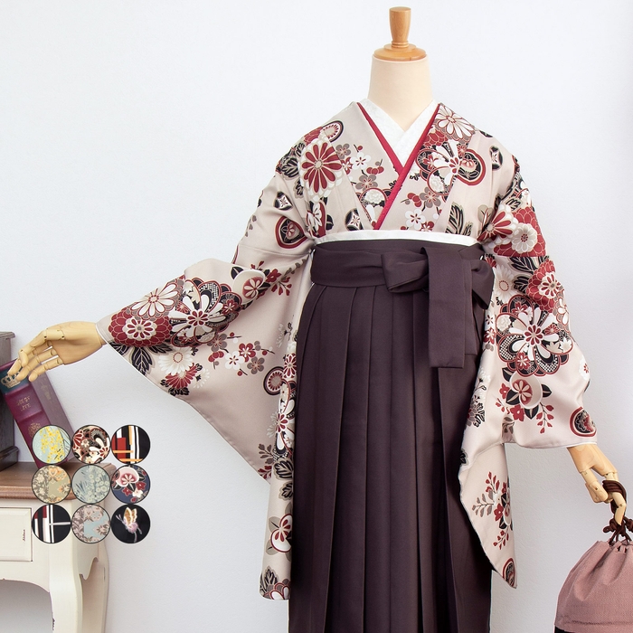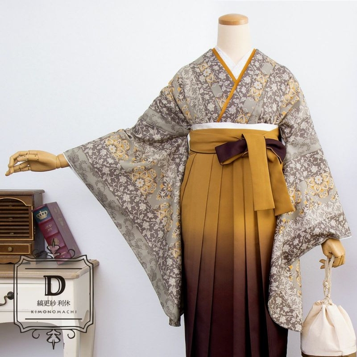 袴と合わせて、卒業式・謝恩会にぴったりの袴スタイルに。 普段着着物として、長めの袖でアンティーク風な着こなしに。