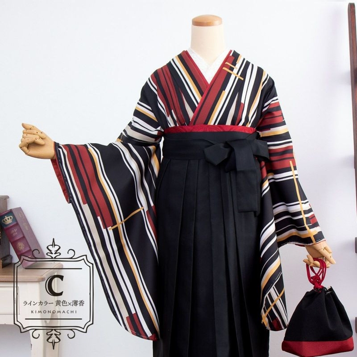 本商品は同社の大人気オリジナル商品「きもの福袋」の、袖が長い二尺袖タイプ。巾着はレトロモダンなデザインの着物に合うように、サイズや形から、細部に至るまでこだわった日本製。卒業式だけでなく、ちょっとお出かけというときにも便利。いずれも京都きもの町オンラインストアにて購入が可能。