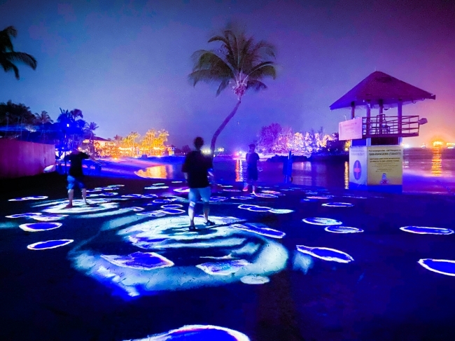 また、光と音の調和が自然本来の美しさを際立たせ、砂浜の上でのライトインタラクションなど、来場者が実際に体験できるイマーシブ(没入)空間も楽しめます。