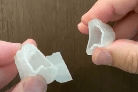 当社では2021年より3Dプリンターで作る全く同じ形の予備入れ歯の製作を開始しました。利用者の多くは就寝時に使用していましたが、無意識に歯を食いしばり翌朝あごが怠いという声もありました。寝る時専用であれば食事をしないので柔らかくて良いのではと考え、開発中だったマリンスポーツ用の入れ歯型マウスピースの技術を応用して試作を開始しました。モニター8名の協力のもと、0.5ミリ単位で厚みを調整しながら約50回の試作を繰り返し完成しました。使用中の入れ歯と全く同じ形に仕上がるので違和感がなく、通常1週間程度、早くて2~3日で完成します。