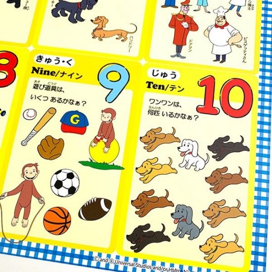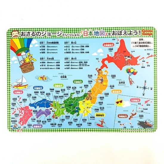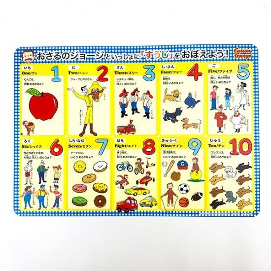 かわいい,グッズ,新着,パーフェクトワールド,パーフェクトワールドトーキョー,ヒットアイテム,キャラクターグッズ,おさるのジョージ,ランチョンマット,数字,英語,日本地図,お勉強,ランチ