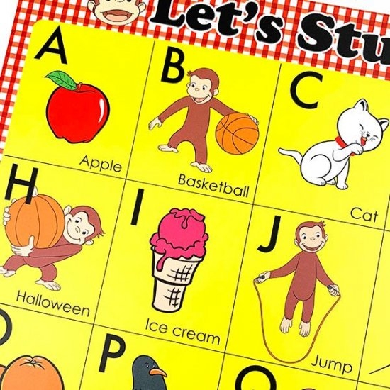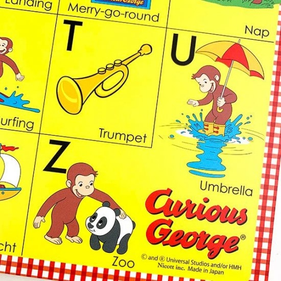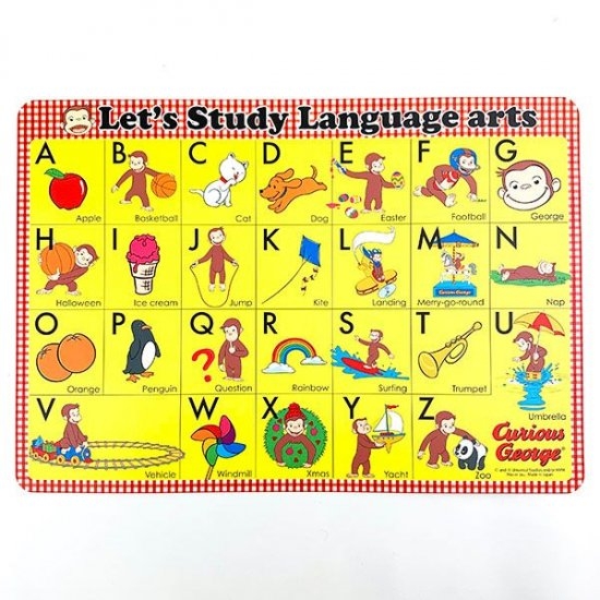 ジョージと一緒にお勉強?!かわいいイラストでランチやおやつの時間に楽しく学ぼう♫おさるのジョージのランチョンマット。