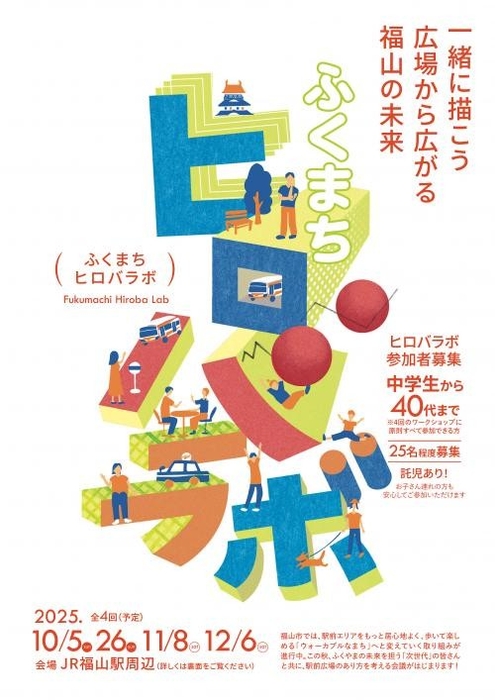 広島県福山市では、福山駅前広場の再整備に向けて、これまで議論に参加機会の少なかった若者や女性から、将来の駅前広場に関する意見を聞くため、「ふくまちヒロバラボ」を開催します。