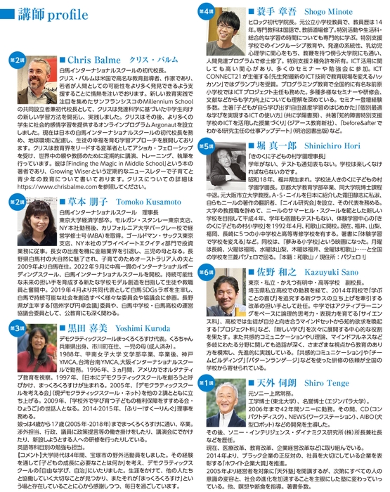 また共感的コミュニケーションやU理論、マインドフルネスなど多岐にわたる分野に関しても造詣が深く、さまざまな視点から教育のあり方を模索し、先進的に実践している。