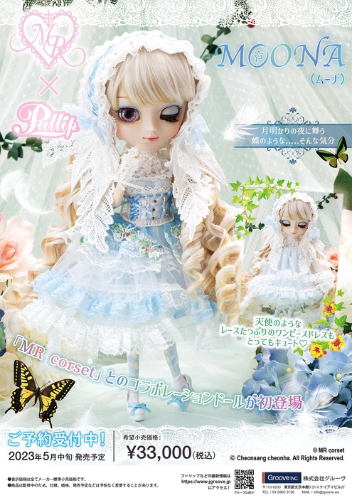 ファッションドール・プーリップとアパレルブランド『MR corset』とのコラボレーション、「プーリップ/MOONA(ムーナ)」が受注開始(2023年5月発売予定)