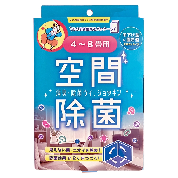 成分の反応により、二酸化塩素を発生させ、空間内の除菌消臭に役立ちます。