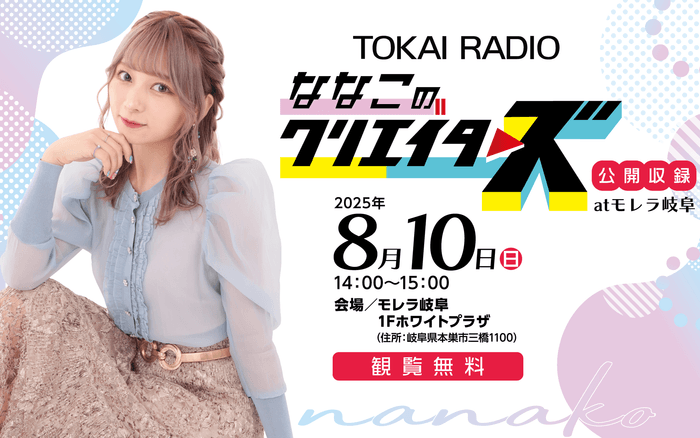 8月10日(日)は、岐阜県で公開収録 「ななこのクリエイターズ at モレラ岐阜」