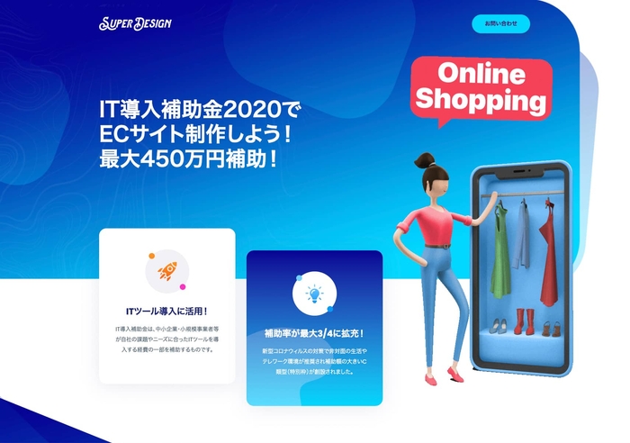 「ShopifyでECサイト完全制作サービスIT導入補助金プラン」を提供開始。期間限定9/11(金)まで。IT導入補助金を活用したオンラインショップ制作サービスで150万円から【最大450万円】(補助率3/4)の補助金申請からECサイト企画制作まですべてをパッケージ。ウープス有限会社は長年大手企業のブランディングを担当してきたデザインプロダクションです。デザインプロダクションだからできるブランディングを含めた質の高い売れるECサイト構築をします。