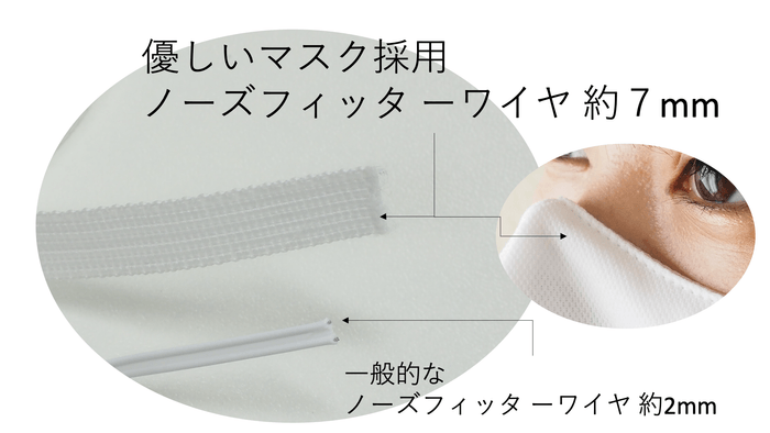 保湿性能20%up乾燥肌に優しい椿オイル加工、7mm極太ノーズフィッター搭載で 眼鏡が曇りにくいマスクです。