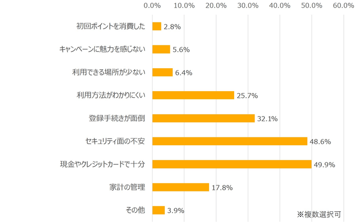 利用率だけでなく、スマホ決済を利用していないユーザーに対し、利用しない理由についても探りました。