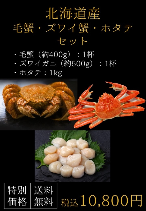 北海道産毛ガニ・ズワイガニ・ホタテセット