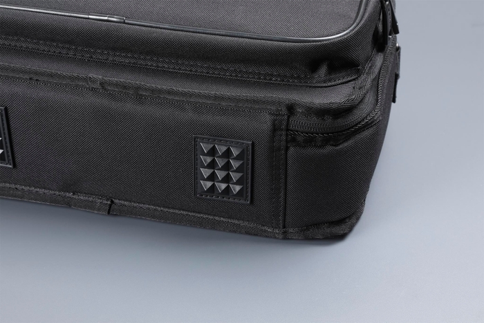 補強された底面部には、床置き時の衝撃を低減するゴム脚を装備。大小2つの外部ポケットは、ACアダプターやケーブル、交換用の弦やスマートフォンなどの収納に最適です。また、ジッパー・タブはボス(BOSS)のロゴを配した仕様となります。