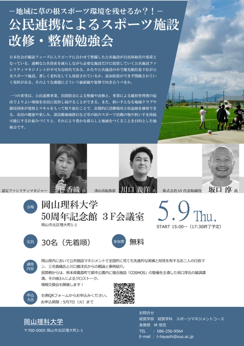 【岡山理科大学】-地域に草の根スポーツ環境を残せるか?!-公民連携によるスポーツ施設改修・整備勉強会
