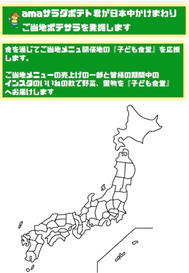 また日本各地のご当地ポテサラの発掘を通じて、こども食堂の応援をする取り組みをいたします。