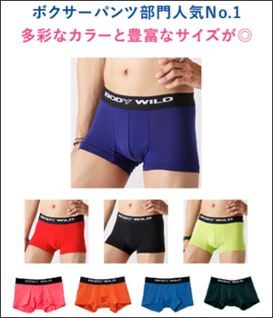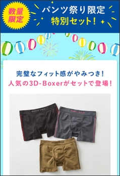 メンズのボクサーパンツ、トランクス、ブリーフの人気№1パンツや、ベストセラーパンツをご紹介。「BODY WILD」の3D-Boxerをはじめとした「パンツ祭り」限定の特別セットもご用意しています。