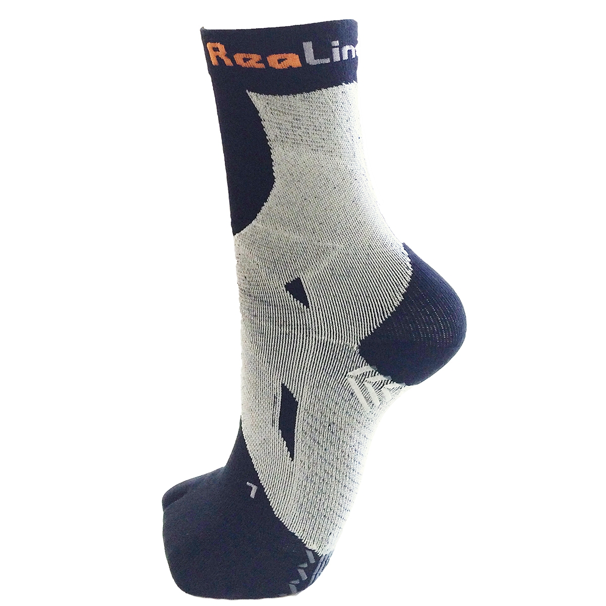 『リアライン・ソックス』は、トレーナーも習得が難しい高度なテーピングの効果を履くだけで発揮する高機能ソックスです。これは、足首の関節を安定させて捻りにくくするとともに、可動域を広げてスポーツパフォーマンス向上が期待されます。