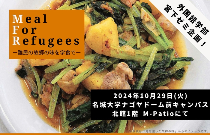 名城大学外国語学部の宮下大夢准教授(国際協力・平和構築論)とゼミ生は、認定NPO法人難民支援協会(JAR)と学生が共同で行うプロジェクト「Meal for Refugees(M4R)」、名城大学ナゴヤドーム前キャンパスの学食「M-Patio(エム パティオ)」と連携し、10月29日、難民の故郷の味を学食で提供します。