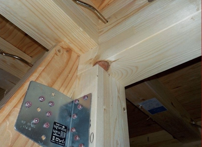 あるべき場所に金物が取り付けられていないというケースがよく見られました。前述の熊本地震で倒壊した木造住宅のほとんどの原因がこの金物に関するケースでした。構造部分に金物の不備があると当然ながら耐震性は弱まり、倒壊する危険性は高まります。写真①では柱と梁の接合部分に金物が取り付けられておらず、当社の指摘を受けて写真②のように工事現場で改善されました。