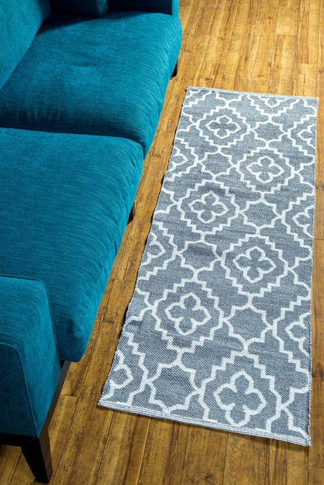 立体的な格子のように見える、シンプルなラグ。深みのあるカラーはグッと大人っぽく、カジュアルになりすぎず、お部屋の印象を洗練された雰囲気に。無地じゃ物足りないけど、柄物は、というときにおすすめです。