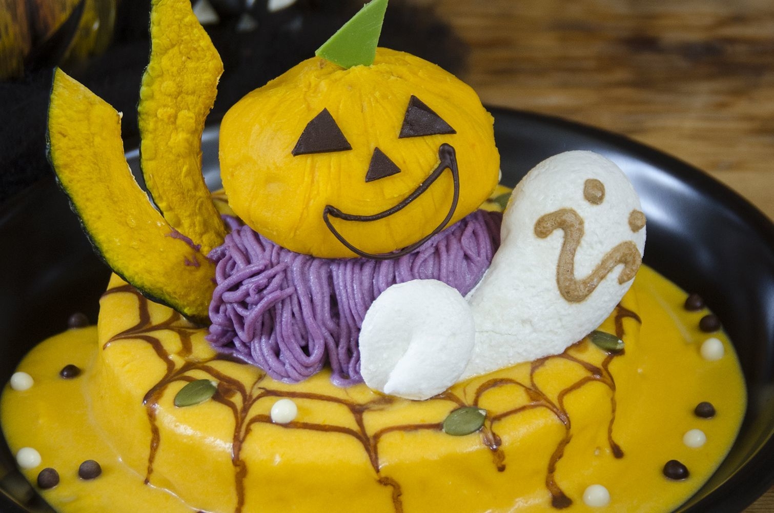 ジャックが主役のハロウィンパンケーキが今年も登場!アクイーユ自慢のしっとりパンケーキに濃厚なかぼちゃのソースをトッピング。たっぷり紫いものクリームの中にはバニラアイスが!ゆらゆらメレンゲゴーストやクモの巣模様のデコレーションで、見た目も楽しくてかわいいパンケーキでハロウィン気分をお楽しみください。