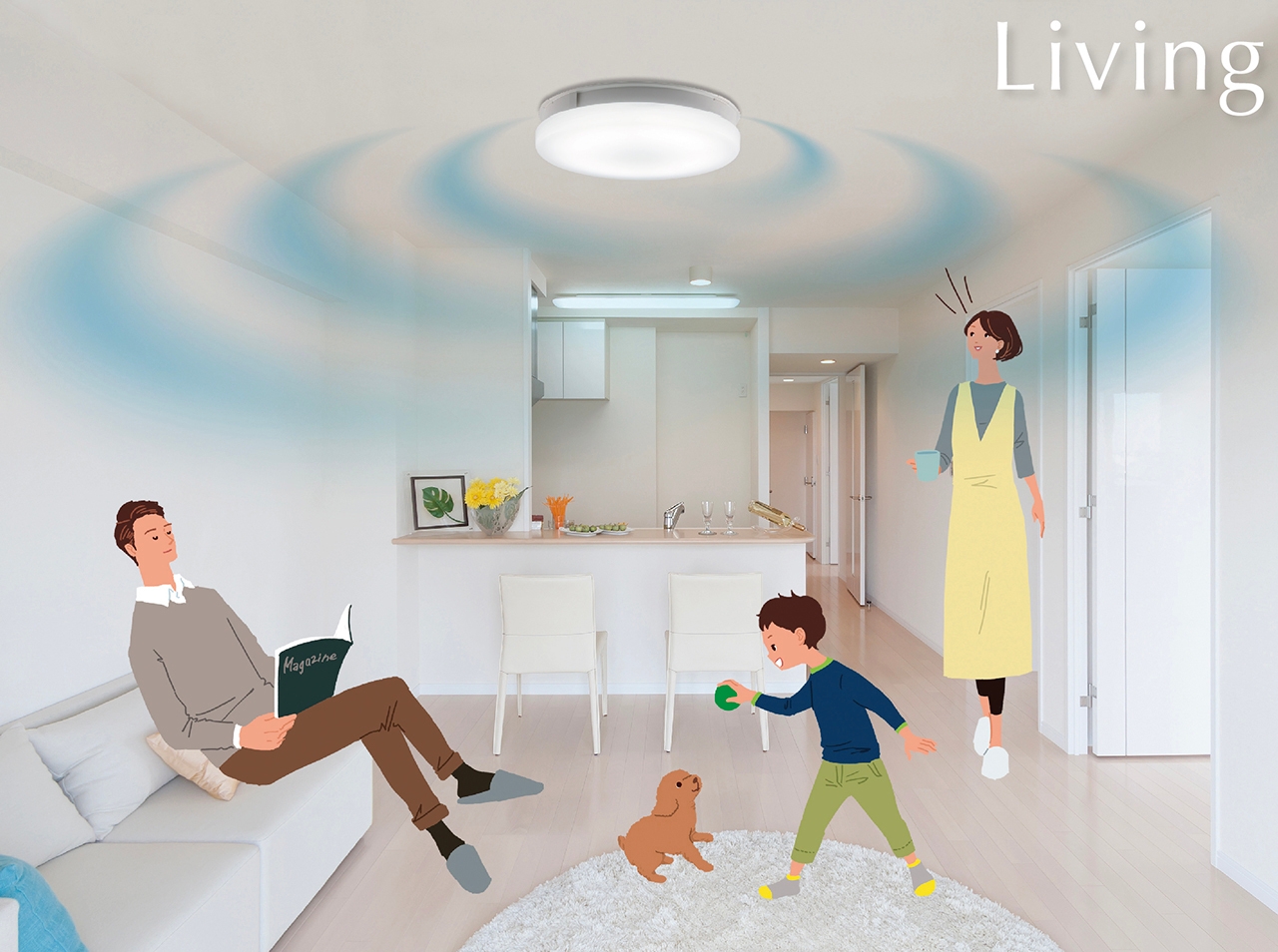 わたしたちは、快適な空気の循環を多くのご家庭で利用していただくために、羽根のないシーリングファンライトを開発しました。