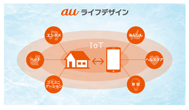 「au HOME」は、「あんしん、べんり、たのしい」をコンセプトに、センサーやネットワークカメラなどの「au HOMEデバイス」を活用し、外出先でもスマートフォンからドアの鍵・窓の開閉状況を確認できる「あんしん」、自宅にいる家族やペットと外出先からコミュニケーションできる「たのしさ」、そして「au HOMEアプリ」で一元的に管理できる「べんり」のある暮らしを提案します。