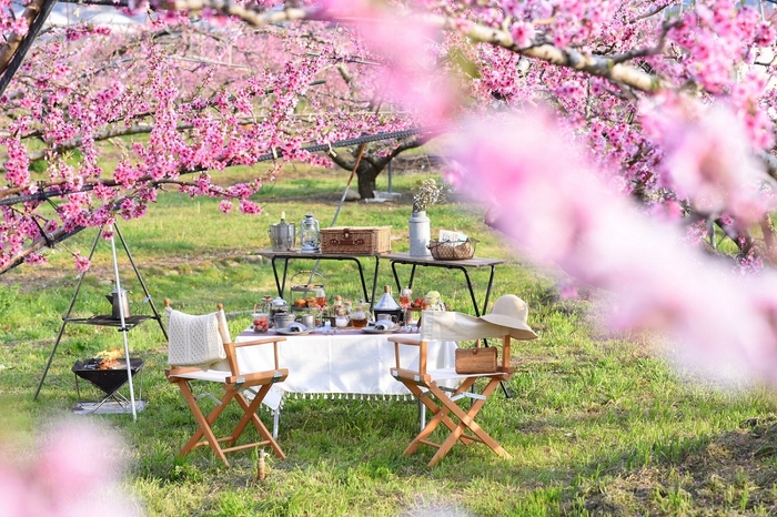 【星のや富士】桃農園を貸し切ってプライベート空間に!優雅に花見を堪能する 「桃源郷グランピング」を1日1組限定で開催|期間:2022年4月1日〜4月20日